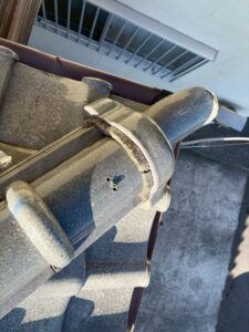 以前アンテナ撤去をした際に屋根瓦の割れがあったそうで、そちらの修繕をご依頼いただきました。