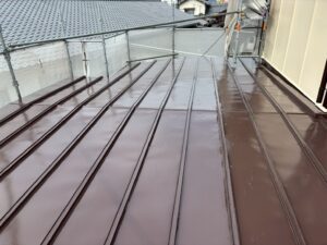金属屋根の大敵・「サビ」の抑止力と、上塗り塗料との密着力が付きましたね。