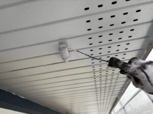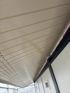 軒天は塗装を怠ると、緑色の苔の発生、黄ばみなどの症状が起こりやすいところ。