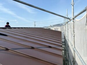仕上げの棟板金まで完成したら、屋根のカバー工法は完了となります!