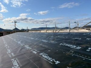 この野地板の上に、ルーフィングと呼ばれる防水シートの敷設を行います。