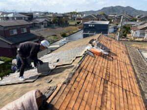 まずはどちらも既存の瓦とルーフィングを撤去していきます。