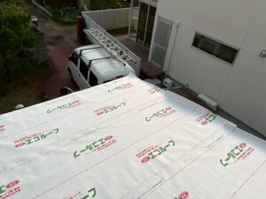 次にルーフィングシートを敷設します。