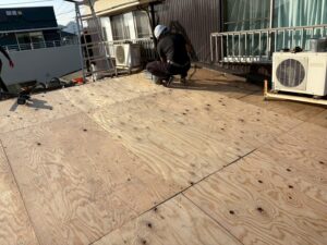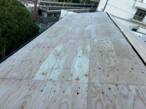 そして、下地補強のため上から野地板を張っていきます。