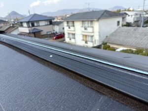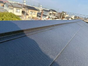 棟板金も取り付け、大屋根の施工はこれで完了です。