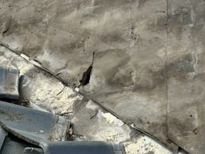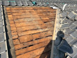 劣化して破れているルーフィングシートがはっきりと分かるかと思います。