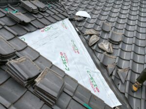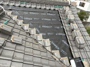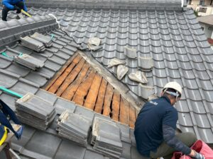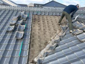 まずは谷板金付近の瓦のみを慎重に取り外していきます。